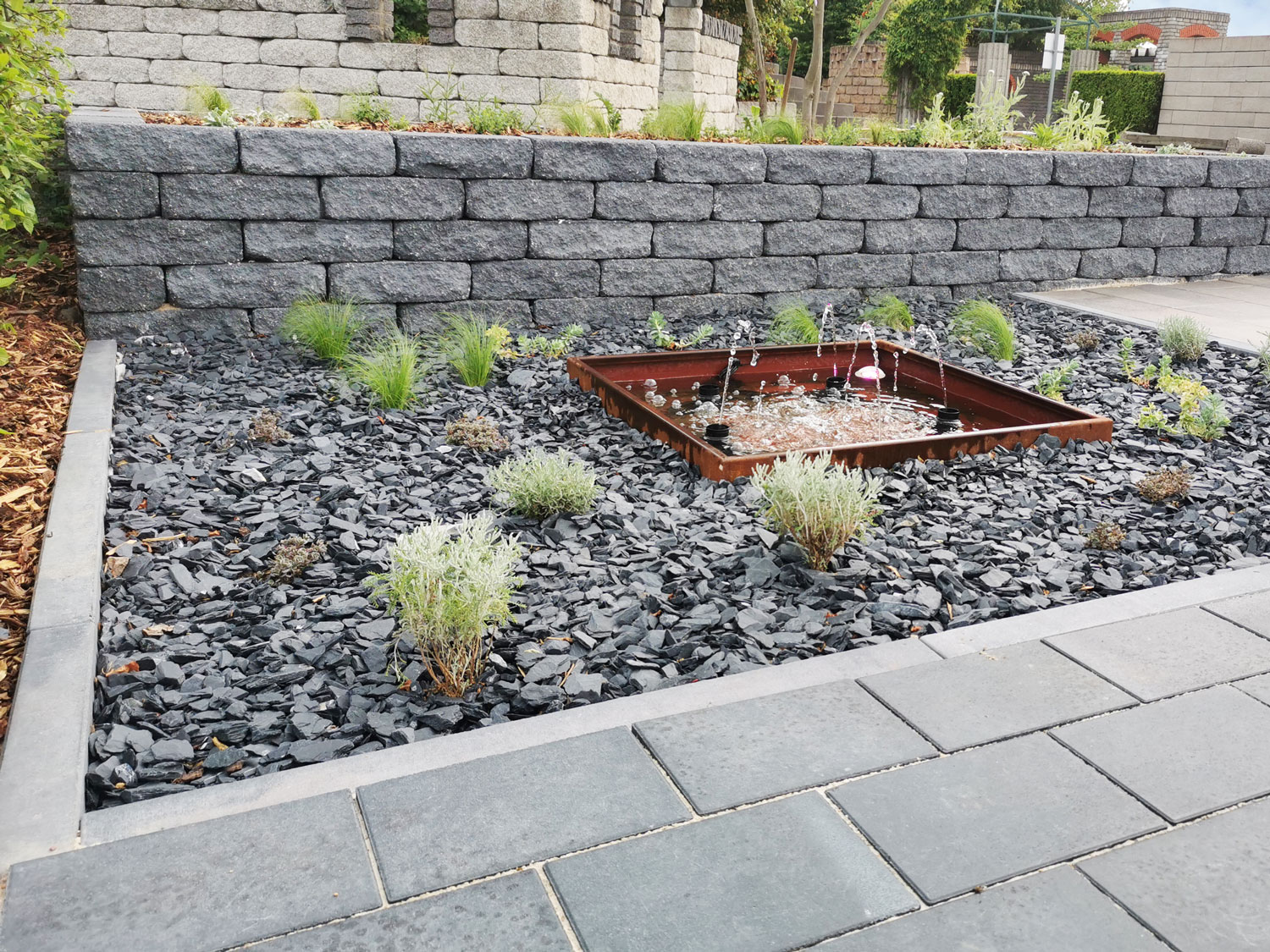 - 3-seitig gebrochen, Oberseite gestrahlt, keine speziellen Abdeck-/Endsteine notwendig