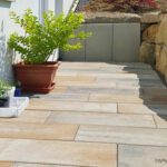 Praktisches Kombisystem mit vier schlanken Steinformaten und akzentuierten Sichtflächen. Die veredelte Oberfläche rundet den eleganten Stil ab und wirkt dabei besonders rutschhemmend für einen sicheren Tritt. Dieses Pflaster macht jedes Haus zum modernen Zuhause.