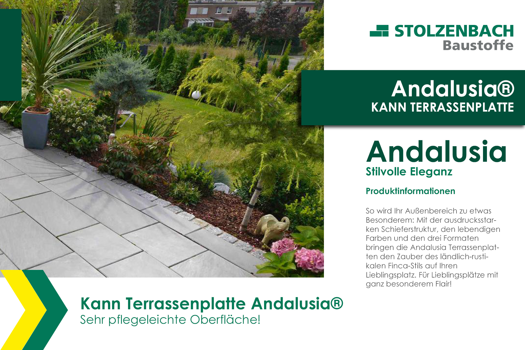 Die Andalusia Terrassenplatten verwandeln Ihren Außenbereich in einen stilvollen Lieblingsplatz. Mit ausdrucksstarker Schieferstruktur, lebendigen Farben und drei Formaten bringen sie den ländlich-rustikalen Finca-Stil auf Ihre Terrasse. Die Platten aus Beton sind originalgetreue Nachbildungen von Naturstein, die besonders realistisch wirken. Die CleanKeeper Plus-Versiegelung sorgt für einfache Reinigung und Schutz vor Verschmutzungen, Moos, Flechten und Schimmel – langlebig und pflegeleicht.
