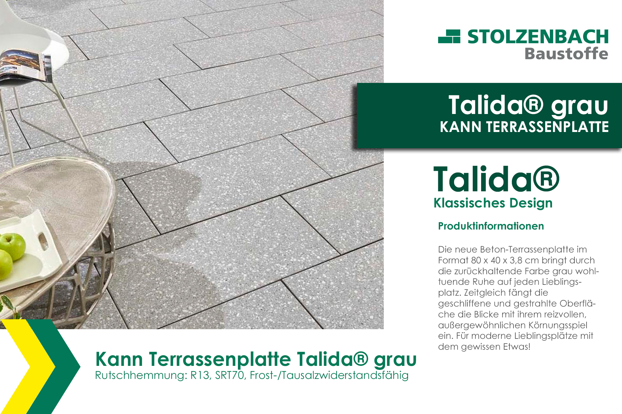 Die Talida® Terrassenplatte eröffnet die Möglichkeit, moderne Wohlfühlbereiche mit einem Hauch von Einzigartigkeit zu gestalten. Egal, ob es sich um den eigenen Garten, den Innenhof oder eine andere Outdoor-Umgebung handelt – diese Platte verleiht dem Raum eine besondere Note. Durch die gelungene Kombination aus klassischem Design, großzügigen Abmessungen und einer markanten Oberflächenstruktur entstehen Lieblingsplätze mit einem ganz besonderen Flair.