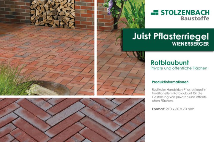 Pflasterriegel Juist Rustikaler Handstrich-Pflasterriegel in traditionellem Rotblaubunt für die Gestaltung von privaten und öffentlichen Flächen. Natur pur auf Schritt und...